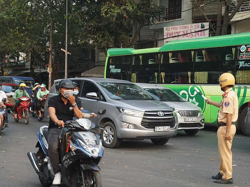 Lực lượng chức năng phân luồng giao thông trong dịp tết Canh Tý 2020. Ảnh: THU TRINH