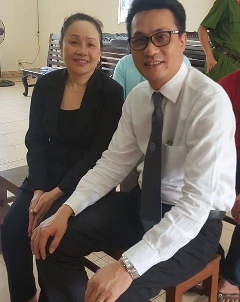 Bà Hạnh (trái) trong khi tòa nghị án trước khi tuyên trả hồ sơ điều tra bổ sung.