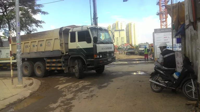 “Trong quá trình thi công các dự án nói trên, các phương tiện vận chuyển bùn đất và nguyên vật liệu đã làm hư hỏng mặt đường và không có biện pháp che chắn phù hợp làm rơi vãi bùn, đất, đá và gây bụi, ảnh hưởng đến cuộc sống của người dân, đồng thời cũng ảnh hưởng đến an toàn đối với người tham gia giao thông…” - UBND quận 2 phản ánh trong công văn gửi Sở TN&MT vào cuối tháng 11-2015.