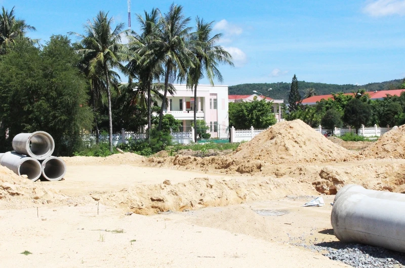 Phần đất bên phải trụ sở Công an thị xã Sông Cầu mà UBND thị xã ra thông báo thu hồi để giao cho doanh nghiệp làm dự án khu đô thị. Ảnh: TẤN LỘC