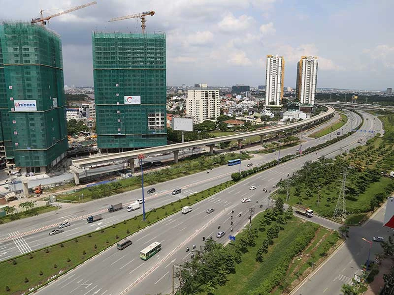 Một góc quận 2, TP.HCM với tuyến metro số 1 chạy dọc đến quận Thủ Đức. Ảnh: HOÀNG GIANG