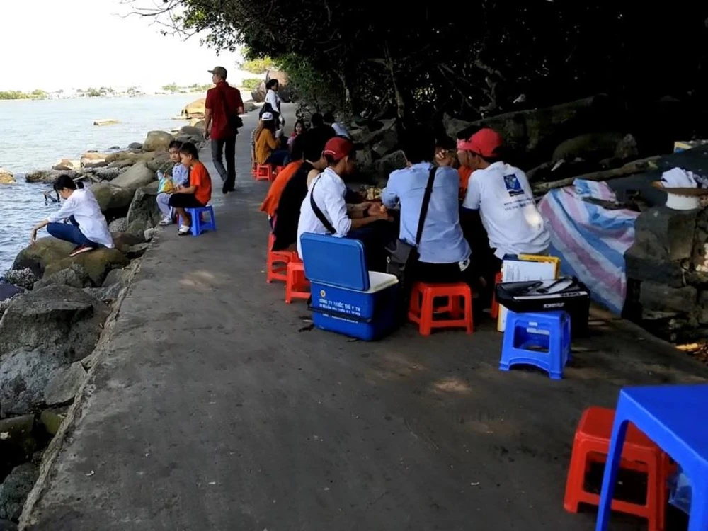 Các quán cóc đang làm mất vẻ mỹ quan của Hòn Đá Bạc. Ảnh: Trần Vũ