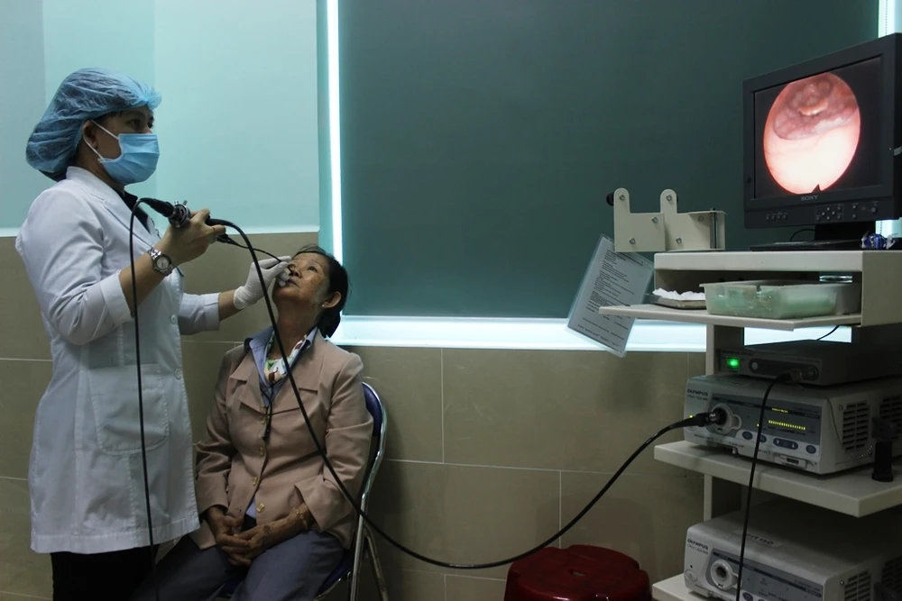 Một bệnh nhân đang được nội soi mũi ở khu khám bệnh. Ảnh: HL