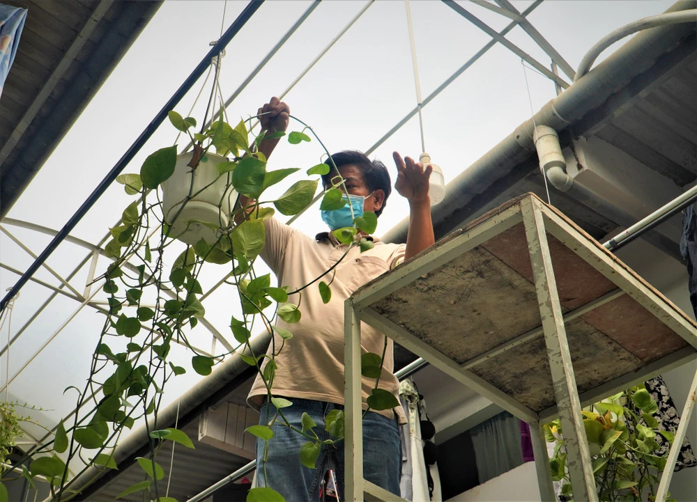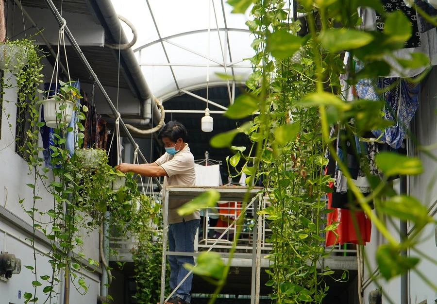 Khu nhà trọ của ông Nguyễn Thành Tâm (quận 12, TP.HCM) là một dãy trọ rất đặc biệt với nhiều cây xanh được chính tay ông trồng và chăm sóc.