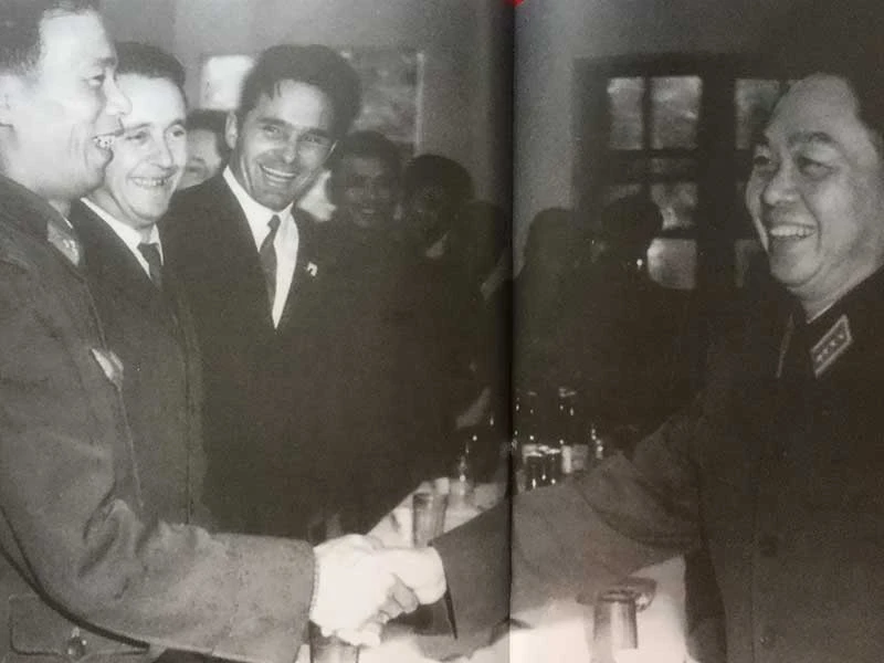 Đại tướng Võ Nguyên Giáp chúc Tết cán bộ và chuyên gia Bộ Tư lệnh Phòng không không quân năm 1966. Ảnh: Nhân vật cung cấp