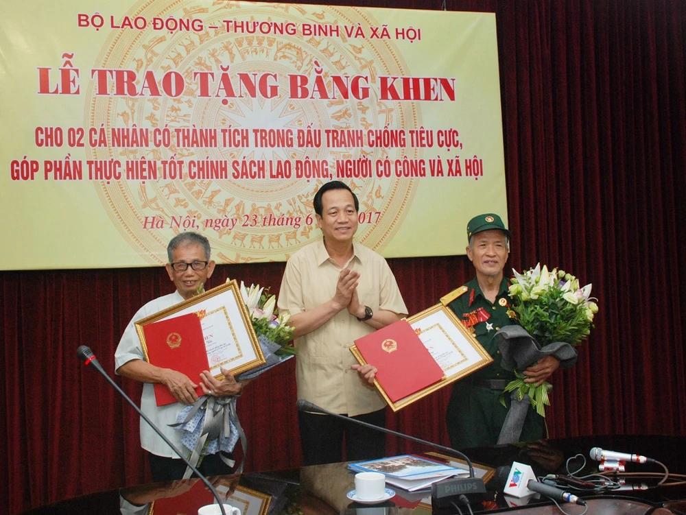 Như Báo Pháp Luật TP.HCM đã đưa tin, chiều 23-6, Bộ LĐ-TB&XH tổ chức Lễ trao tặng bằng khen cho hai lão nông Nguyễn Công Uẩn và Nguyễn Tiến Lãng (Thuận Thành, Bắc Ninh) có thành tích xuất sắc trong đấu tranh chống tiêu cực.