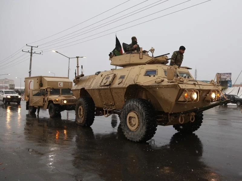 Nhân viên an ninh Afghanistan bên ngoài học viện Marshal Fahim ở Kabul sau khi có báo cáo về vụ việc. Ảnh: AP