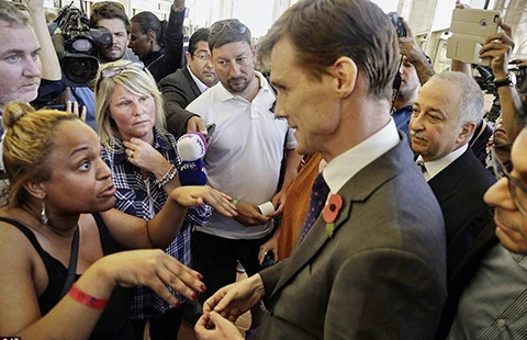 Đại sứ Anh tại Ai Cập John Casson đến sân bay Sharm el-Sheikh giúp các du khách Anh về nước. Ảnh: AP