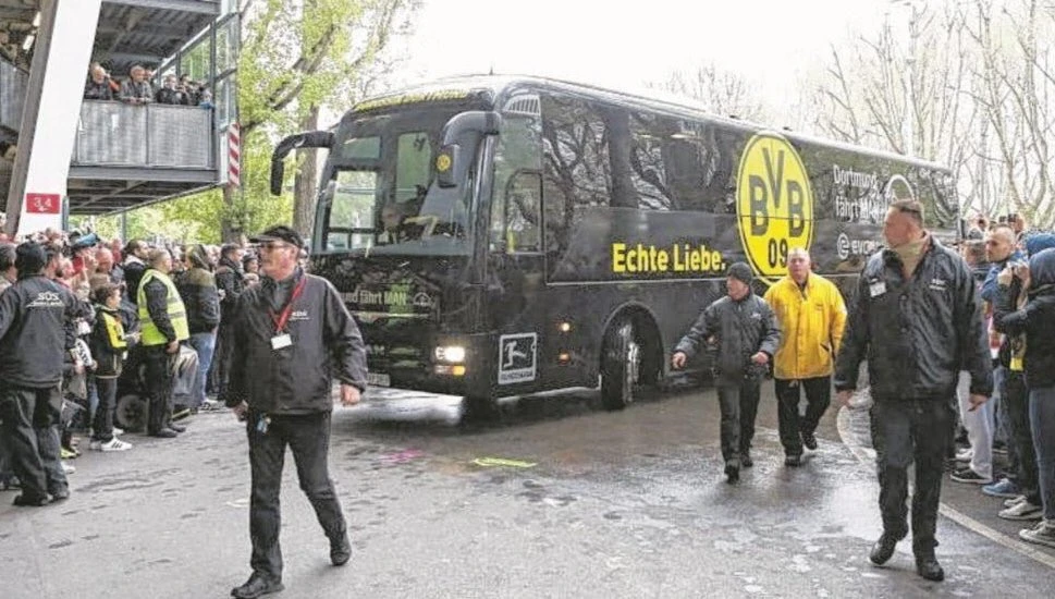 Theo tờ The Telegraph, cảnh sát cho biết có ba vụ nổ sát bên xe buýt chở đội bóng Borussia Dortmund, làm vỡ cửa kính và làm bị thương một cầu thủ của đội bóng. Vụ nổ xảy ra khi xe buýt chở đội vừa đến gần sân vận động.