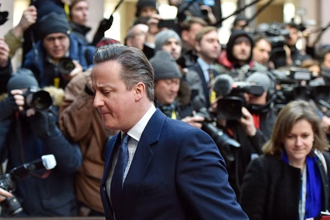 Thủ tướng Anh David Cameron đến dự hội nghị EU tại Bỉ ngày 19-2. (Ảnh: GETTY IMAGES)