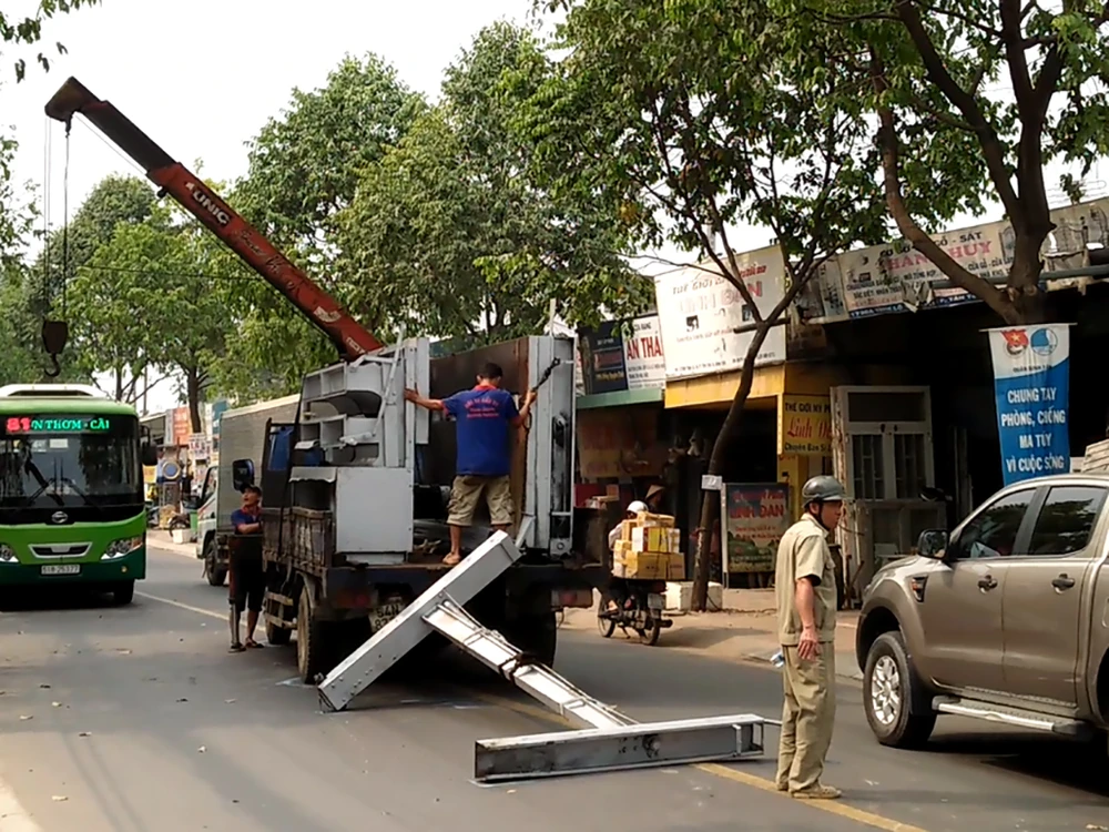 Chiều 3-1, xe tải cẩu loại 2,7 tấn chở theo máy công nghiệp khối lượng lớn lưu thông trên đường Trần Văn Giàu, hướng từ TP.HCM đi Long An.