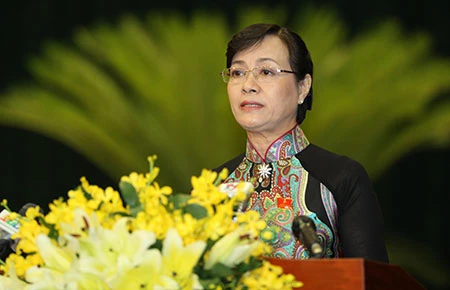 Chủ tịch HĐND TP.HCM Nguyễn Thị Quyết Tâm phát biểu khai mạc. Ảnh: THANH VŨ