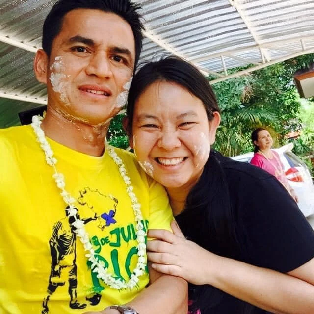 Tết Songkran năm nay, người Thái không tổ chức lễ hội té nước truyền thống ở nơi đông người do tác động của dịch bệnh COVID-19 tại Thái Lan. Riêng Kiatisak bày tỏ tình cảm với vợ của mình qua cái Tết cũ ở quê nhà.