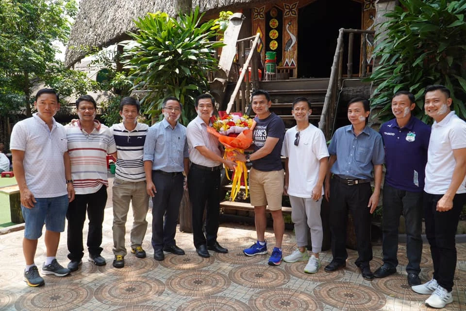 Lãnh đạo Tập đoàn HA Gia Lai và CLB chúc mừng năm mới HLV Kiatisak cùng trợ lý Bundit.