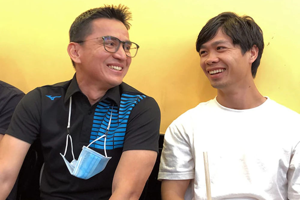 Quay sang Công Phượng và Tuấn Anh, ông thầy 48 tuổi hỏi nửa đùa nửa thật: “Chiếc áo thi đấu của các bạn có hai ngôi sao tượng trưng cho hai chức vô địch. Mùa này các bạn có thể gắn thêm một ngôi sao lên ngực áo nữa hay không?”.