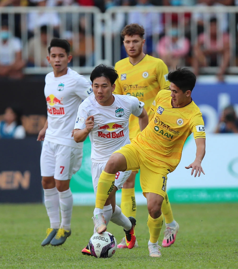 Minh Vương (8) vào sân giữa hiệp 2 và tạo dấu ấn về thế trận. Ảnh: VPF (trận HA Gia Lai- Hà Nội)