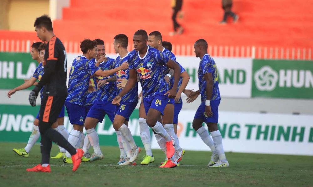 HA Gia Lai có hai trận thắng và chỉ cần 1 điểm trong lượt trận cuối với chủ nhà Bình Định ngày 9-1 là chắc chắn vô địch. Ảnh: ANH HỮU.