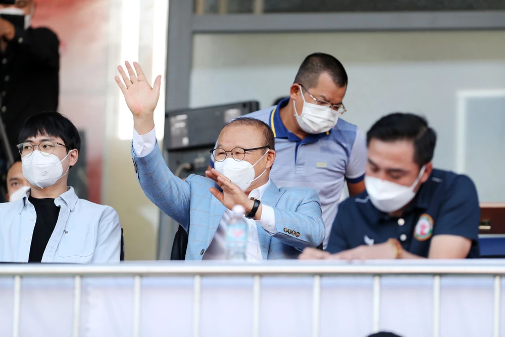 HLV Park Hang-seo xuất hiện trên sân Quy Nhơn kiểm tra phong độ của các tuyển thủ quốc gia. Ảnh: ANH HỮU.