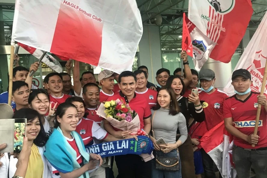 HLV Kiatisak và fan hâm mộ của CLB HA Gia Lai. Ảnh: CTV