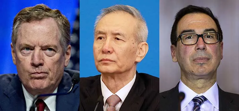 Đại diện Thương mại Mỹ Robert Lighthizer (trái), Phó Thủ tướng Lưu Hạc (giữa) và Bộ trưởng Tài chính Mỹ Steven Mnuchin. Ảnh: BLOOMBERG