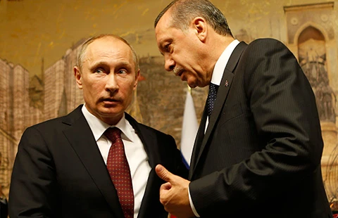 Tổng thống Putin (trái) lên án hành động của chính quyền ông Erdoğan (phải) là cú “đâm sau lưng” nước Nga, “thực hiện bởi đồng lõa của bọn khủng bố”. Ảnh minh họa: REUTERS