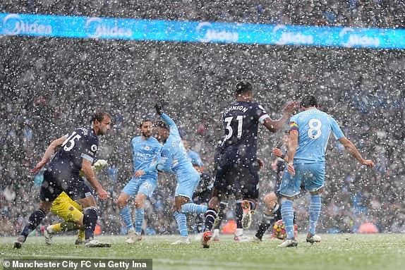 Phần lớn thời gian của hiệp hai, Man . City nỗ lực tìm kiếm bàn thắng nhân đôi cách biệt, nhưng những pha tấn công của học trò Pep Guardiola không đủ khoan thủng hàng thủ của West Ham. Đến phút 78, đội khách có cơ hội ghi bàn gỡ hòa với cú sút xa của Declan Rice, nhưng thủ môn Ederson đã cản phá thành công.