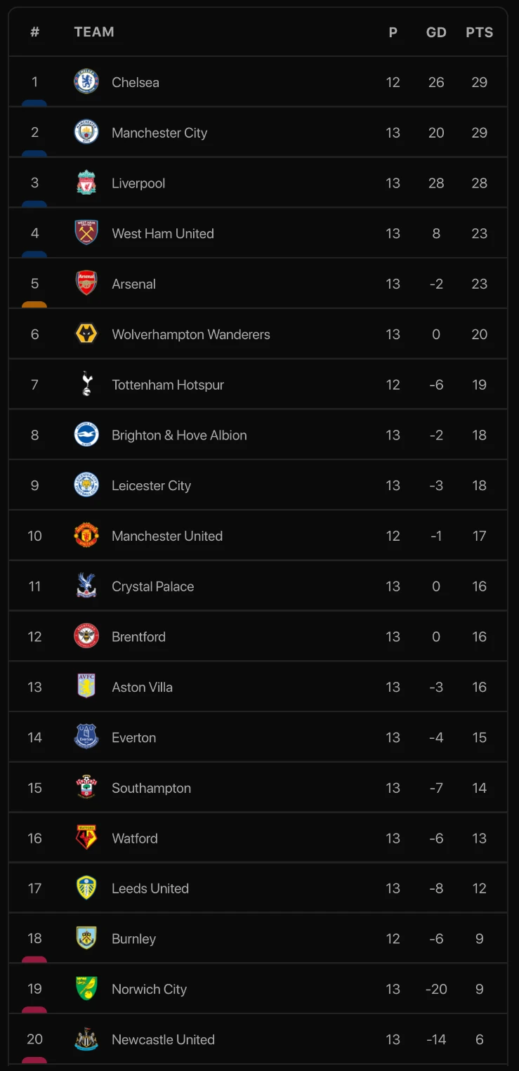 BXH Premier League: