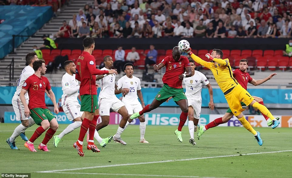Cú đấm bóng trúng mặt Danilo Pereira của thủ môn Lloris khiến Pháp chịu phạt đền. Huyền thoại Rio Ferdinand ví pha đấm bóng này của thủ môn Lloris như võ sĩ UFC. ảnh: Getty Images.