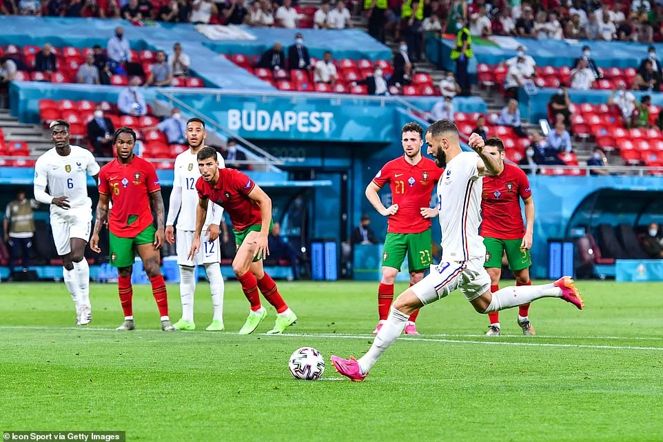 Đầu hiệp 2, Benzema nâng tỷ số lên 2-1 cho Pháp sau khi tham khảo VAR, trọng tài đã công nhận bàn thắng cho tiền đạo đang khoác áo Real Madrid. Ảnh: Getty Images.
