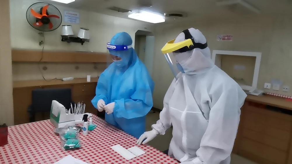 Lấy mẫu xét nghiệm nhanh SARS-CoV-2 ở Trung tâm Kiểm dịch Y tế Quốc tế Hải Phòng