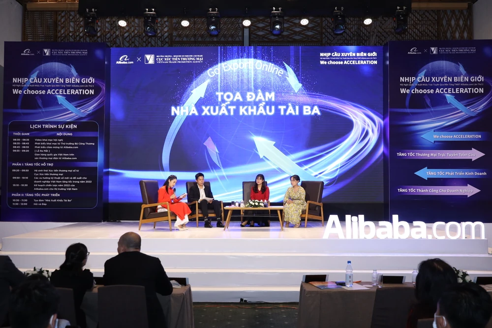 | Ông Vũ Bá Phú, Cục trưởng Cục xúc tiến Thương mại kỳ vọng, việc kết hợp với sàn Alibaba.com là sàn bán sỉ có lượng người mua sỉ lớn từ hơn 190 quốc gia, vùng lãnh thổ, các ngành như nông sản, thực phẩm chế biến- đóng gói, hàng tiêu dùng, thủ công mỹ nghệ, may mặc, cơ khí chế tạo, chế phẩm nhựa và chất dẻo, bao bì đóng gói của Việt Nam hoàn toàn có lợi thế cạnh tranh trên sàn Alibaba.com về chi phí giá thành. "Đặc biệt, thông qua hoạt động thương mại số, các doanh nghiệp vừa và nhỏ, hoàn toàn có thể xuất khẩu sản phẩm mang chính tên mình, vượt lên bóng lưng của ông lớn để khách hàng nhớ mặt, gọi tên, tìm chỗ đứng trong thị trường ngoài nước"- ông Phú chia sẻ. |