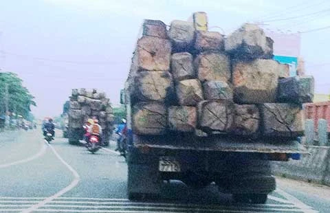 Một trong những xe chở gỗ lậu lưu thông trên đường bị người dân chụp ảnh và thông báo cho công an. (Ảnh do người dân cung cấp)