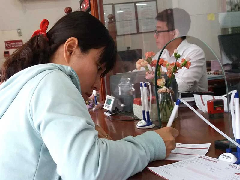Tín dụng có sự tăng trưởng mạnh trong thời gian gần đây. Trong ảnh: Khách hàng đang làm thủ tục vay vốn. Ảnh: HTD