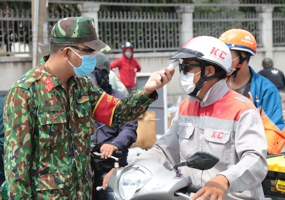 Công nhân, người lao động đi/về giữa Đồng Nai và TP.HCM phải thực hiện các yêu cầu y tế để phòng dịch. Ảnh: Vũ Hội