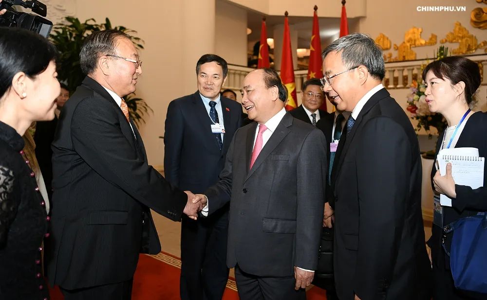 Thủ tướng chào mừng đoàn đại biểu Trung Quốc. Ảnh Chinhphu.vn