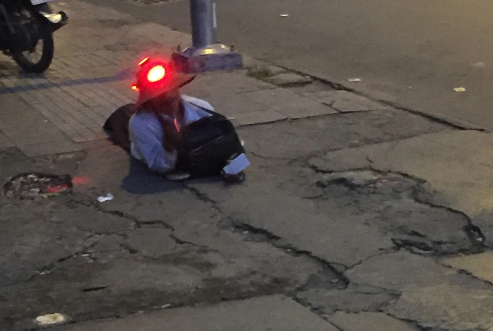 Chiều tối 20-8, trước cổng BV Nhân dân Gia Định (quận Bình Thạnh, TP.HCM), một người đàn ông có dáng vẻ của người bị khuyết tật nằm sấp trên vỉa hè. Anh ta gầy gò, ăn mặc rách rưới, trên tay cầm hơn chục tờ vé số nhầu nhĩ…