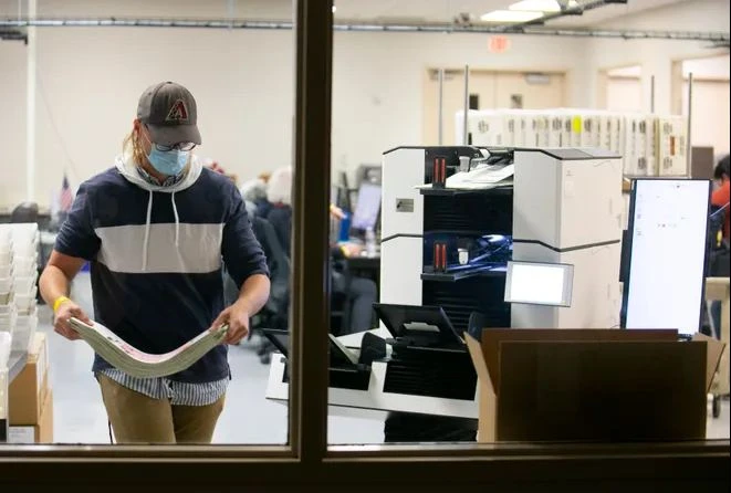 Kiểm phiếu ở hạt Maricopa, bang Arizona. Ảnh: THE ARIZONA REPUBLIC