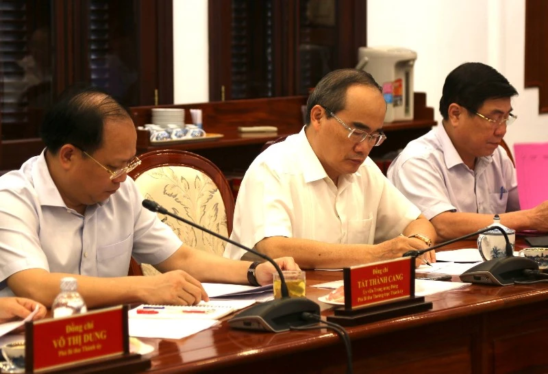 Về phía Thành ủy TP.HCM có ông Nguyễn Thiện Nhân - Ủy viên Bộ Chính trị, Bí thư Thành ủy TP.HCM; ông Tất Thành Cang - Ủy viên Trung ương Đảng, Phó Bí thư Thường trực Thành ủy; ông Nguyễn Thành Phong - Ủy viên Trung ương Đảng, Phó Bí thư Thành ủy, Chủ tịch UBND TP.HCM; bà Nguyễn Thị Quyết Tâm - Phó Bí thư Thành ủy, Chủ tịch HĐND TP.HCM...