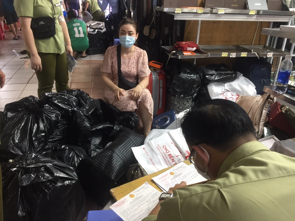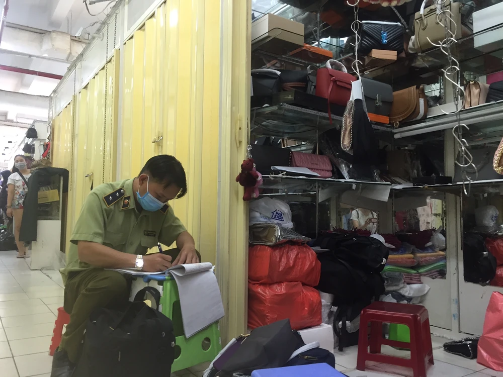 QLTT lập biên bản sạp kinh doanh túi xách thời trang tại chợ Bến Thành