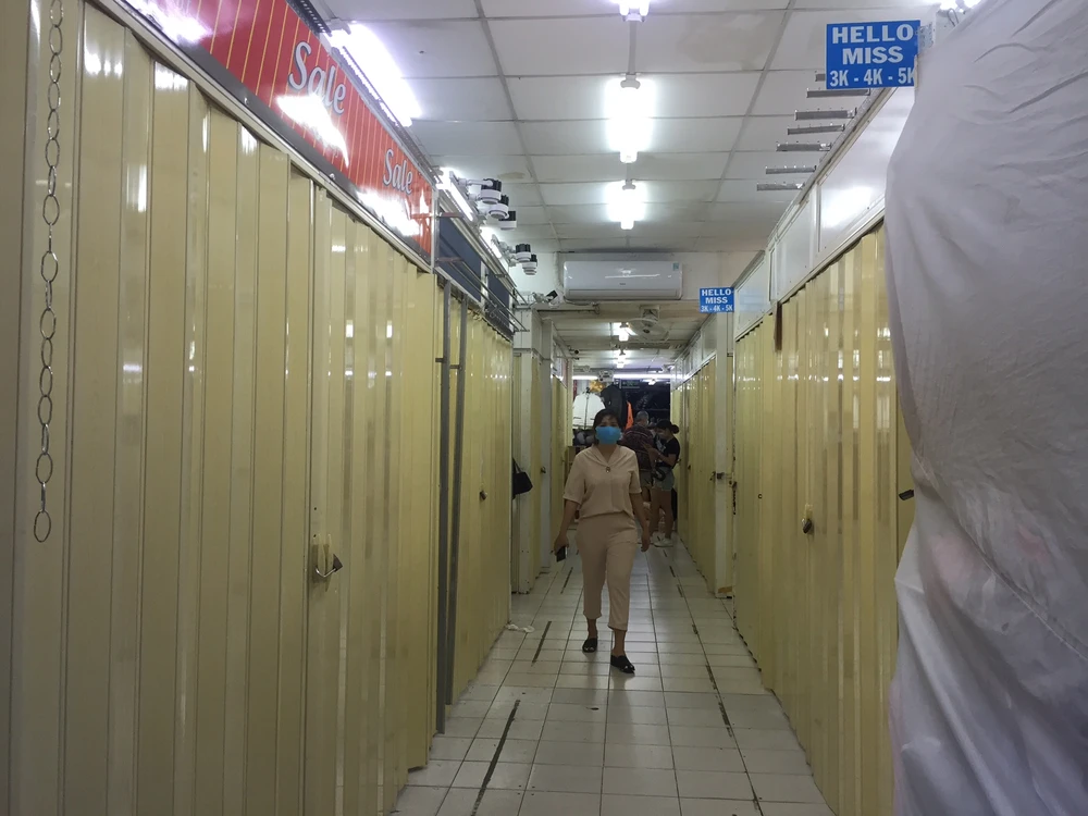 Tại thời điểm kiểm tra, Trung tâm thương mại Saigon Square có nhiều sạp đóng cửa, sạp nghỉ tránh dịch, sạp cho thuê...