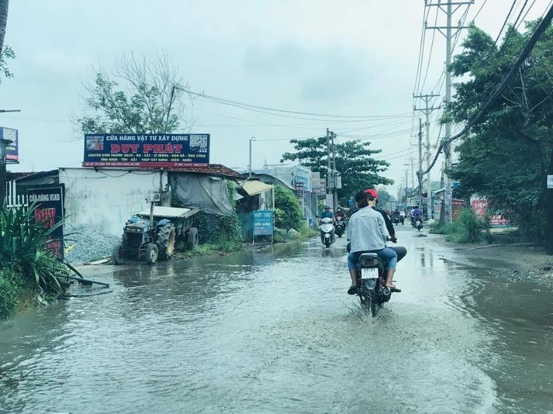 Chỉ cần mưa là tuyến đường ngập sâu trong nước. Ảnh: ĐÀO TRANG