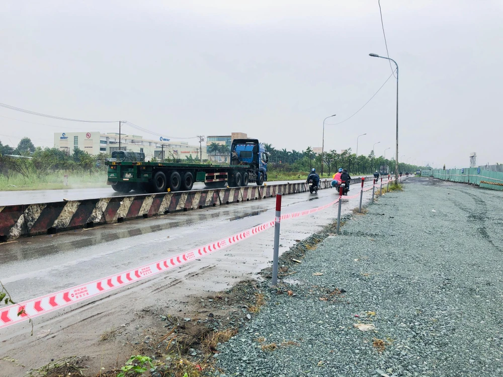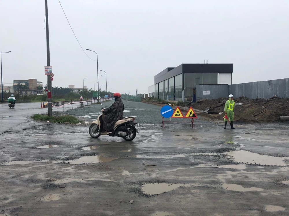 Về vấn đề này, đơn vị thi công cho biết công trình hiện đang bị ảnh hưởng bởi dự án vệ sinh môi trường nước đang thực hiện song song, thi công trong phạm vi đất thuộc dự án được giao. Đoạn thi công đã hoàn trả lớp mặt bằng cấp phối đá dăm, cao độ bằng mặt đường hiện hữu. Đơn vị thi công hứa khắc phục các thiếu sót ngay trong ngày. Đoàn kiểm tra cho đơn vị thi công khắc phục ngay và không tiến hành lập biên bản. Nếu trong một ngày chưa khắc phục thì thanh tra Sở GTVT sẽ tiến hành xử ký vi phạm hành chính đối với hạng mục này.