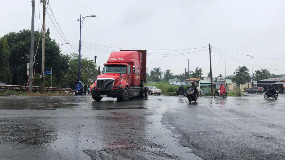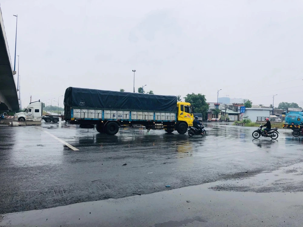 Nút giao thông này có nhiều container di chuyển.