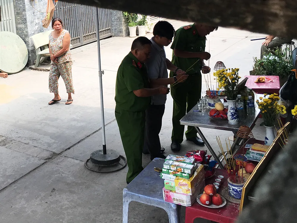 Trước đó, người thân đã để một bàn thờ trước căn nhà kèm di ảnh của những người đã khuất. Theo ghi nhận, khu vực được phong tỏa hoàn toàn. Cảnh sát tiến hành tháo niêm phong căn nhà. Bên trong lực lượng phối hợp lập biên bản kiểm tra, ghi nhận. Rất đông người dân khu vực theo dõi.