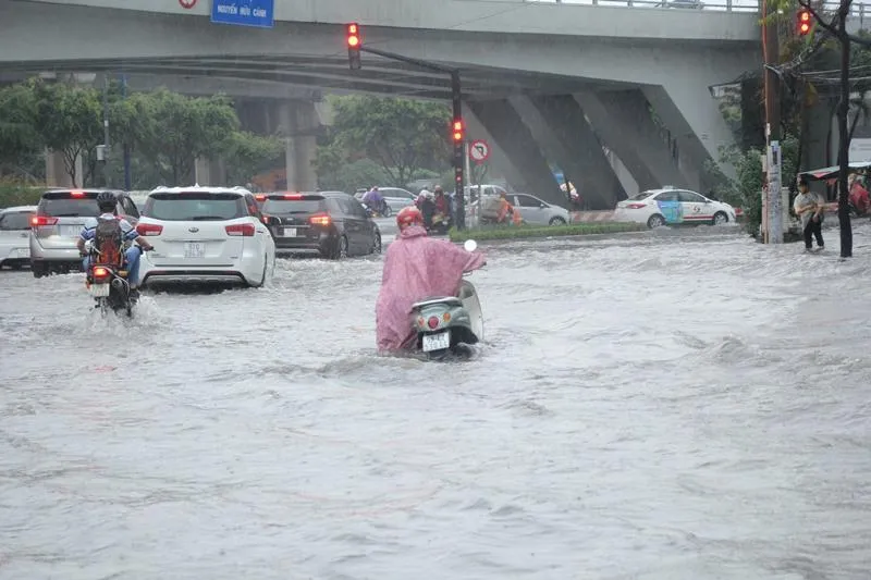 UBND TP chỉ đạo các đơn vị tăng cường biện pháp chống ngập trên đường Nguyễn Hữu Cảnh. Ảnh: ĐÀO TRANG.