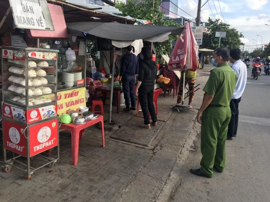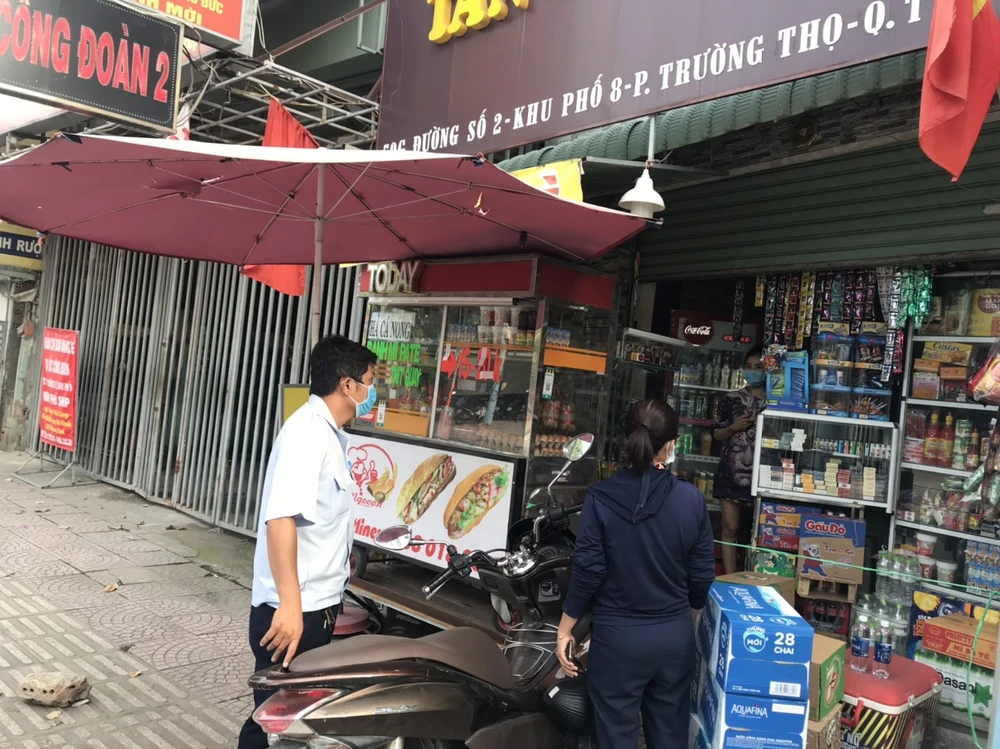 UBND phường Trường Thọ, TP Thủ Đức đi kiểm tra và nhắc nhở các đơn vị kinh doanh. Ảnh: CTV.