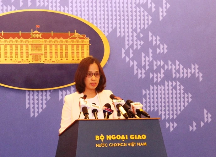 Bà Phạm Thu Hằng,Phó phát ngôn viên Bộ Ngoại giao VN tại buổi họp báo.