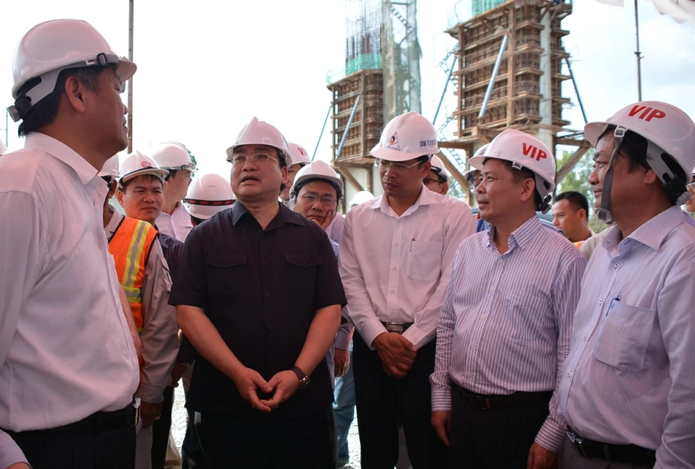 Phó Thủ tướng Hoàng Trung Hải và đoàn công tác kiểm tra dự án hai cây cầu quan trọng ở miền Tây.