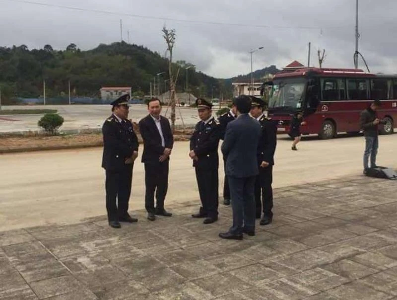 Đoàn công tác của Cục Xuất nhập khẩu kiểm tra tình hình xuất nhập khẩu tại cửa khẩu biên giới của tỉnh Cao Bằng. Ảnh: CTV