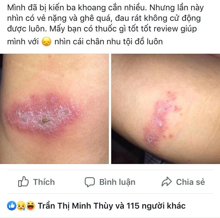 Không chỉ có Luân và Quân, rất nhiều sinh viên tại KTX đã đăng tải lên mạng xã hội những vết thương do kiến ba khoang cắn. Có người đăng lên hỏi thăm cách chữa trị, nhiều người lại muốn cảnh báo cho các SV khác đang sống trong KTX như mình để có cách phòng tránh.